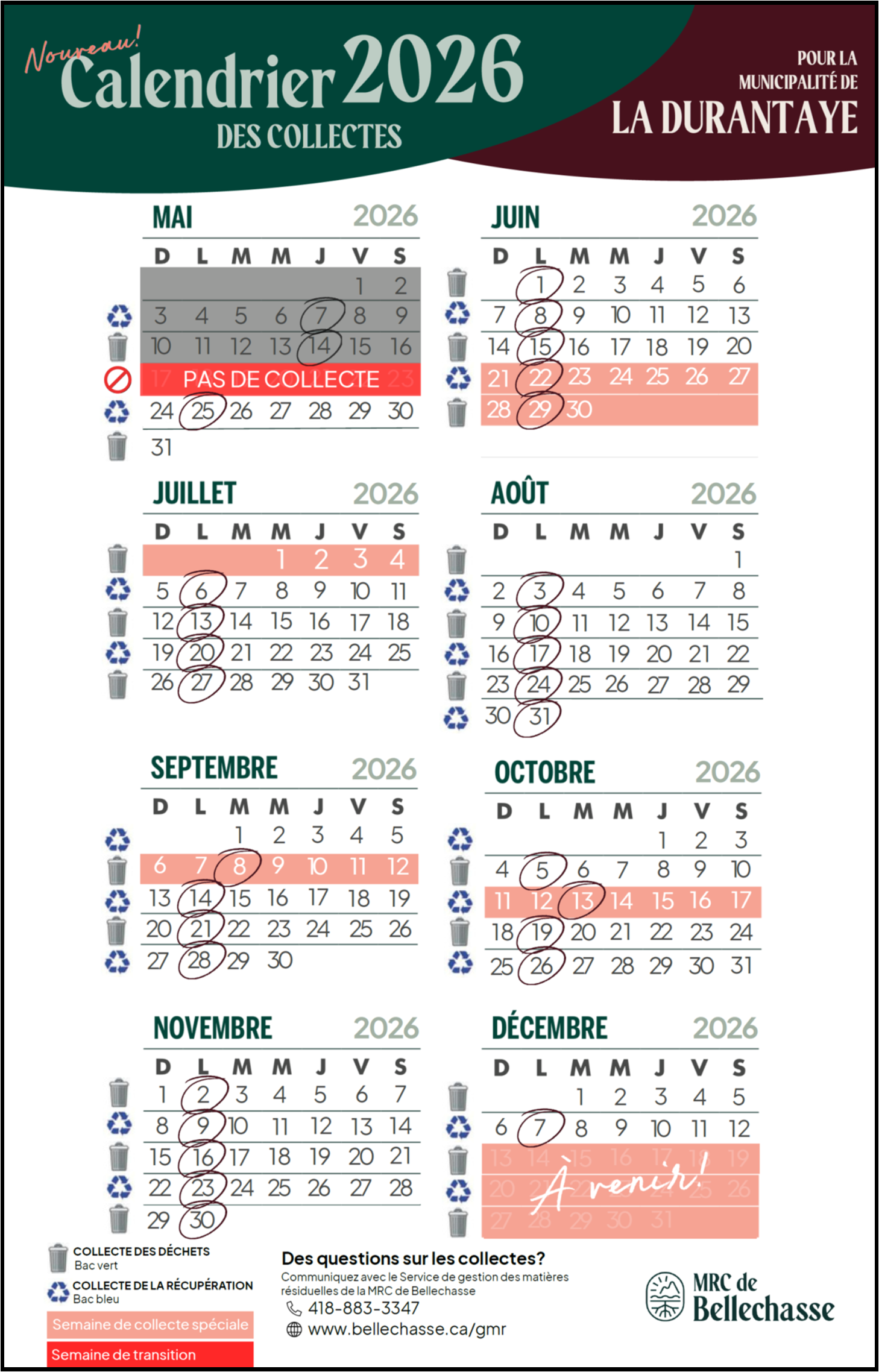 À La Durantaye, les collectes des déchets et du recyclage ne se feront plus les jeudis,