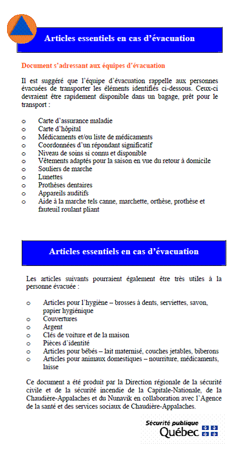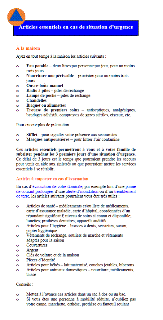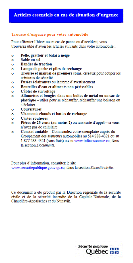 Articles essentiels en cas de situation d’urgence - dans votre automobile